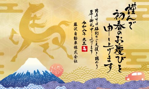 旧年中は格別のご厚情を賜り、誠にありがとうございました。 本年も皆様が御健勝で御多幸でありますよう、心からお祈り申し上げます。 2026年 元旦 藤沢自動車株式会社 社員一同